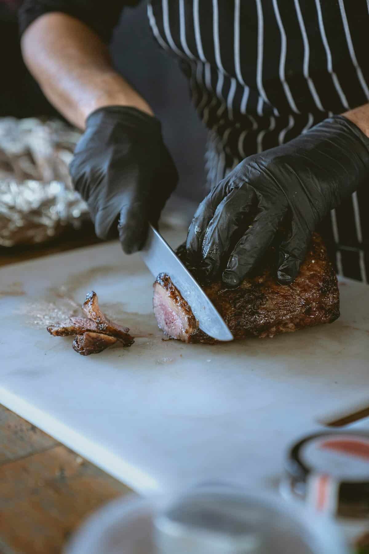 The prime rib offers a succulent beef flavor with rich marbling throughout. Juicy, tender roast that pairs beautifully with wine or stock reduction sauces.
